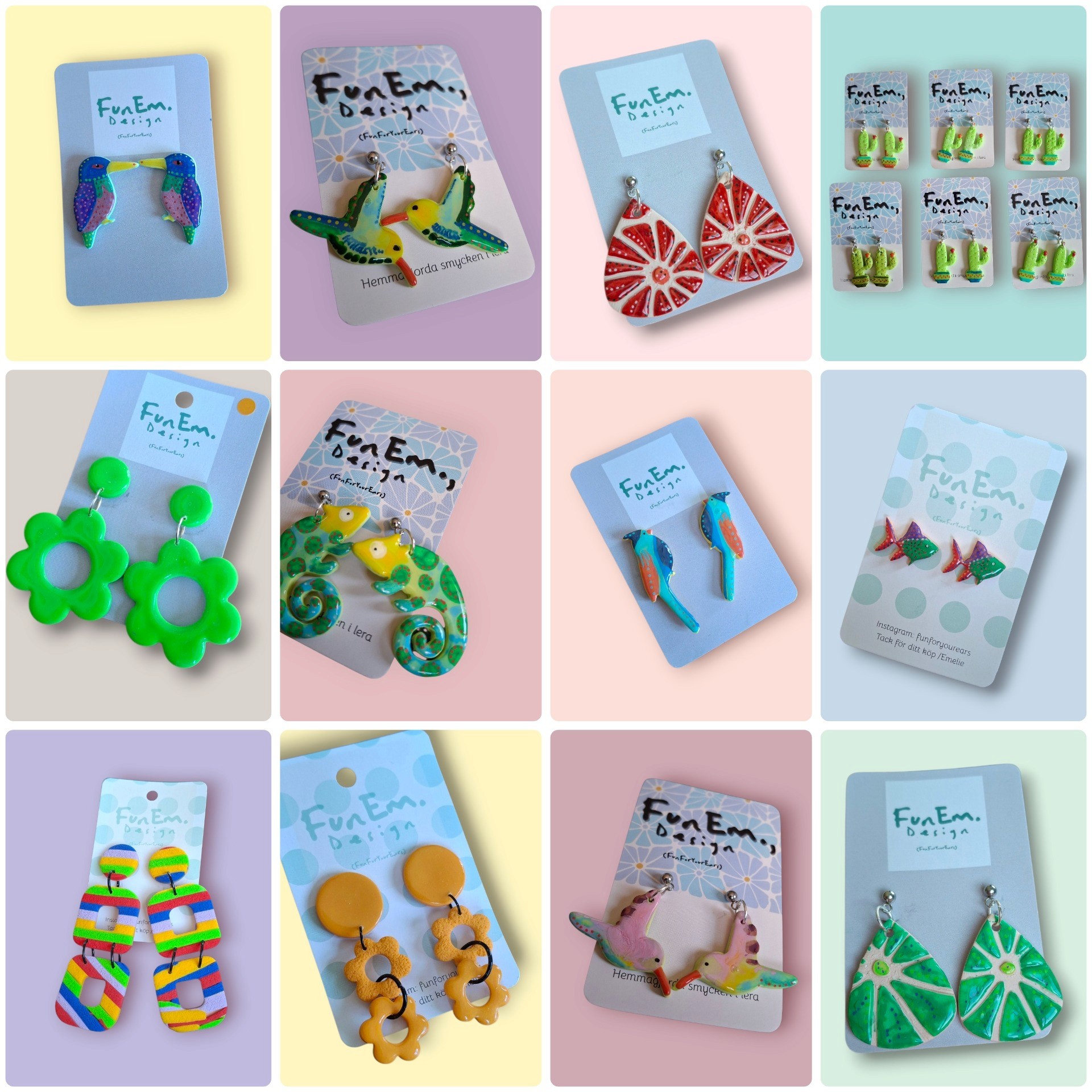 Hej jag heter Emelie och gör Unika handgjorda och handmålade smycken i lera och trä.