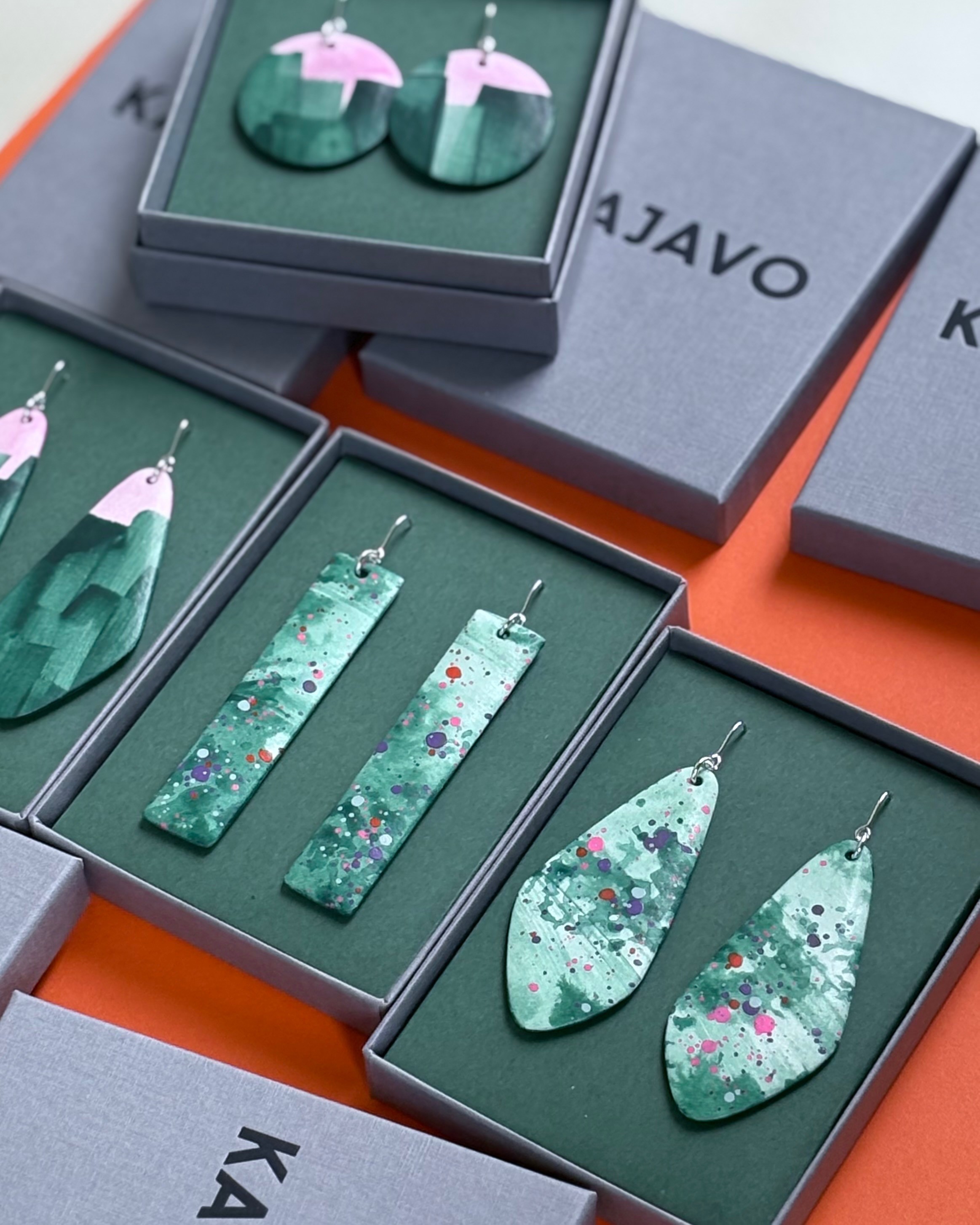 Kajavo is a Finnish jewellery brand, run by designer Nina Kajavo. At Kajavo all jewellery is handmade in Helsinki using carefully selected materials, such as Finnish birch and recycled silver 925. Each and every piece of jewellery has a one of a kind design that is either hand-printed or hand-painted. The Kajavo jewellery collection consists of a range of wooden earrings, pendants and rings. It also includes a variety of silver pieces such as hoops, stud earrings and pendants.