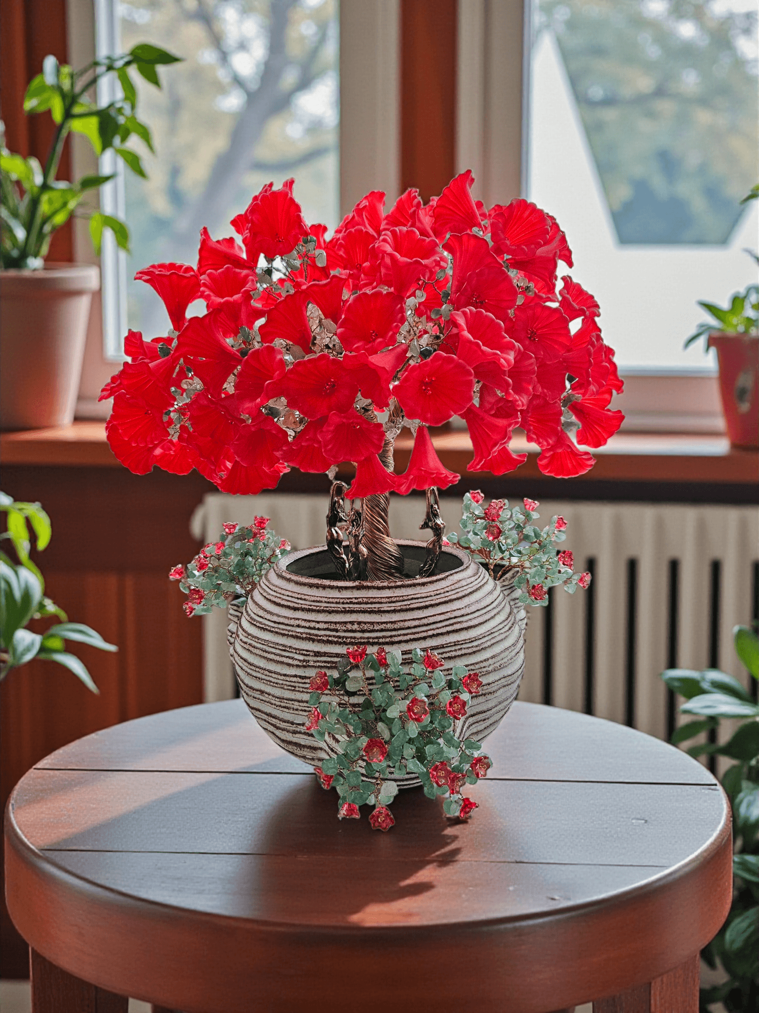My name is Irina Jovel-Dalmau, though on Instagram I go by Malenita. This is my fantasy forest, where every tree tells a story — a reflection of my past and present, woven with resilience and grit. Each creation is carefully crafted: every wire, bead, stone, and crystal chosen with love and intention. My inspiration flows from the forests of my birthplace, Honduras, and the landscapes of my home, Sweden. Recurring motifs you’ll discover are cherry blossoms and the timeless image of a woman deeply connected to Nature. Step into my world, and may these trees whisper their stories to you.